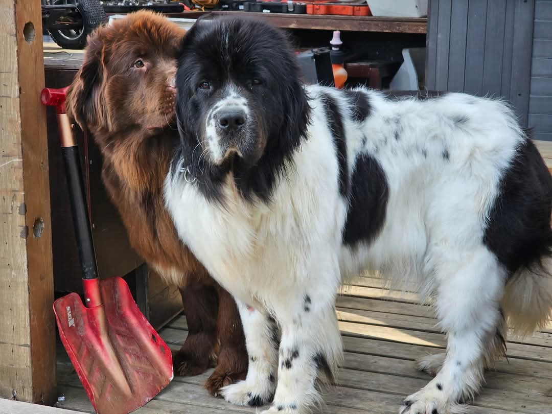 Newfoundlandinkoiria kotona on tällä hetkellä 7. Diiva, Wanda, Wendy, Ulla, Kuiske, Meena ja Royal.